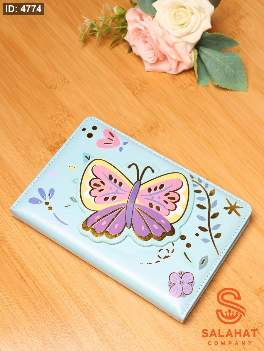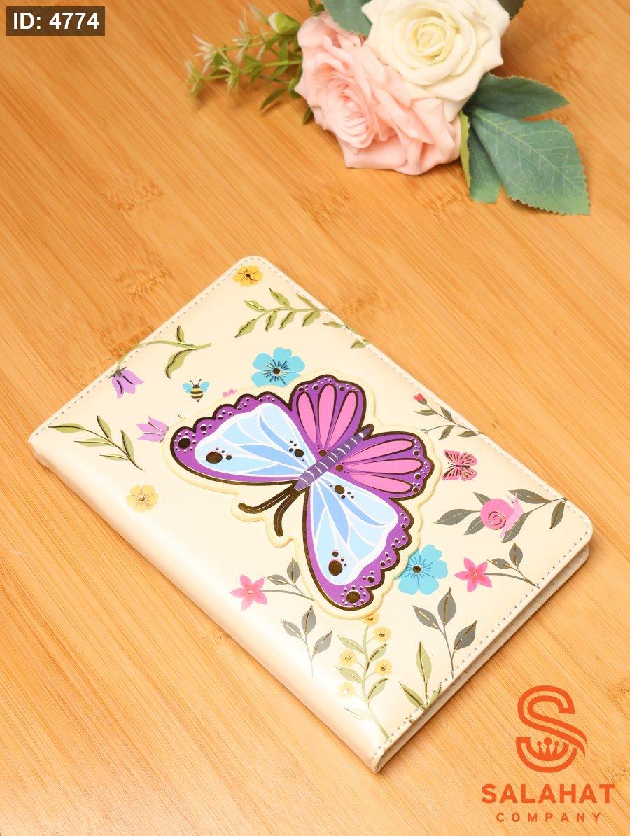 غلاف جلدي فاخر مزين برسومات فراشات وزهور ملونة.