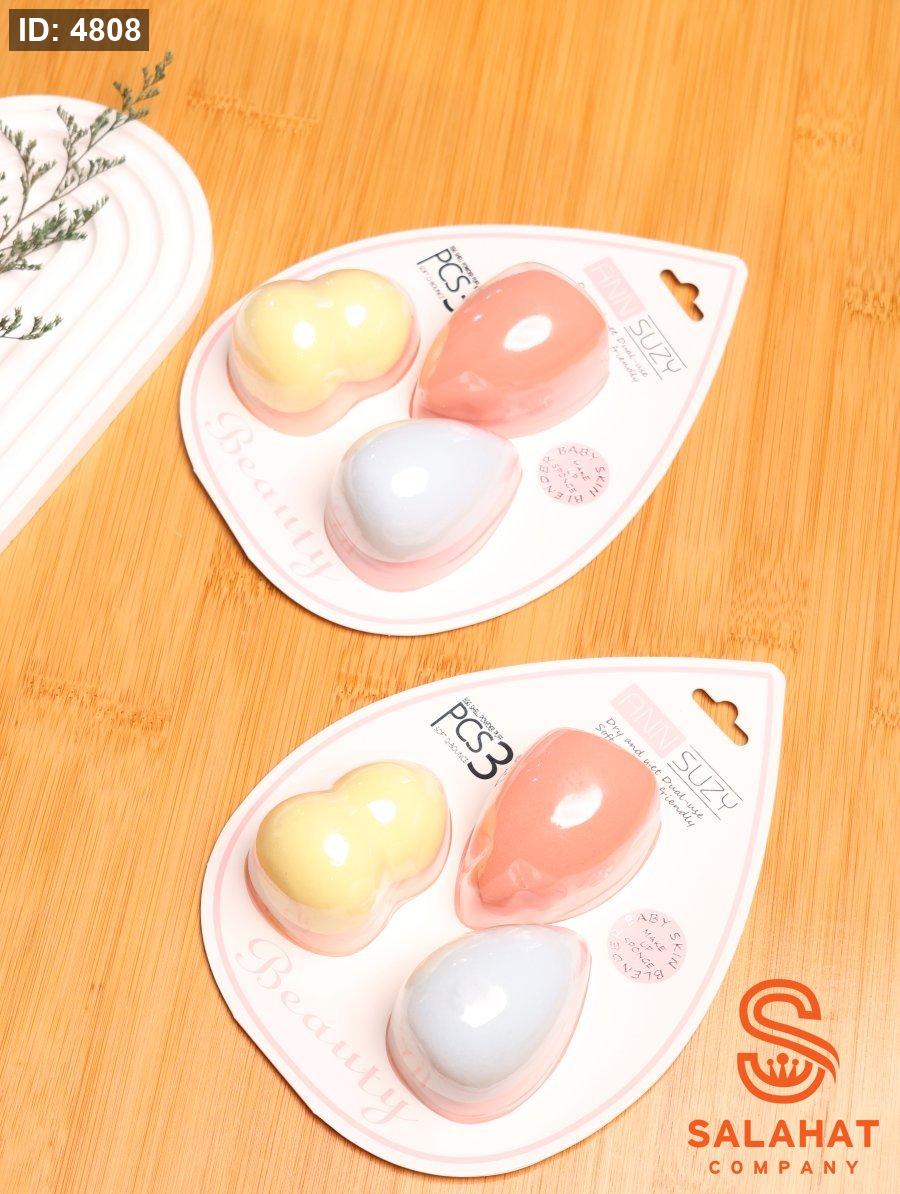 كرت يحتوي على 3 قطع من البيوتي بلندر بألوان مختلفة، مصممة لتوزيع المكياج بسلاسة ودمجه بشكل مثالي.