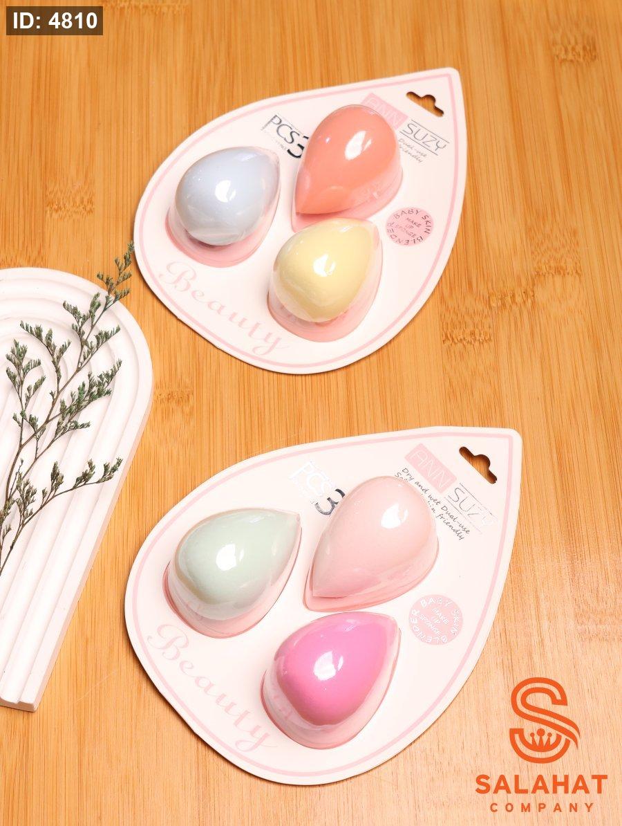 كرت يحتوي على 3 قطع من البيوتي بلندر بألوان مختلفة، مصممة لتوزيع المكياج بسلاسة ودمجه بشكل مثالي.