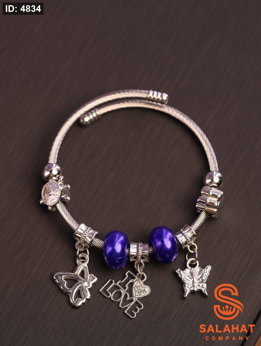 * مزينة بثلاث خرزات كريستالية كبيرة باللون البنفسجي المميز، تمنحها لمسة فاخرة وملفتة.