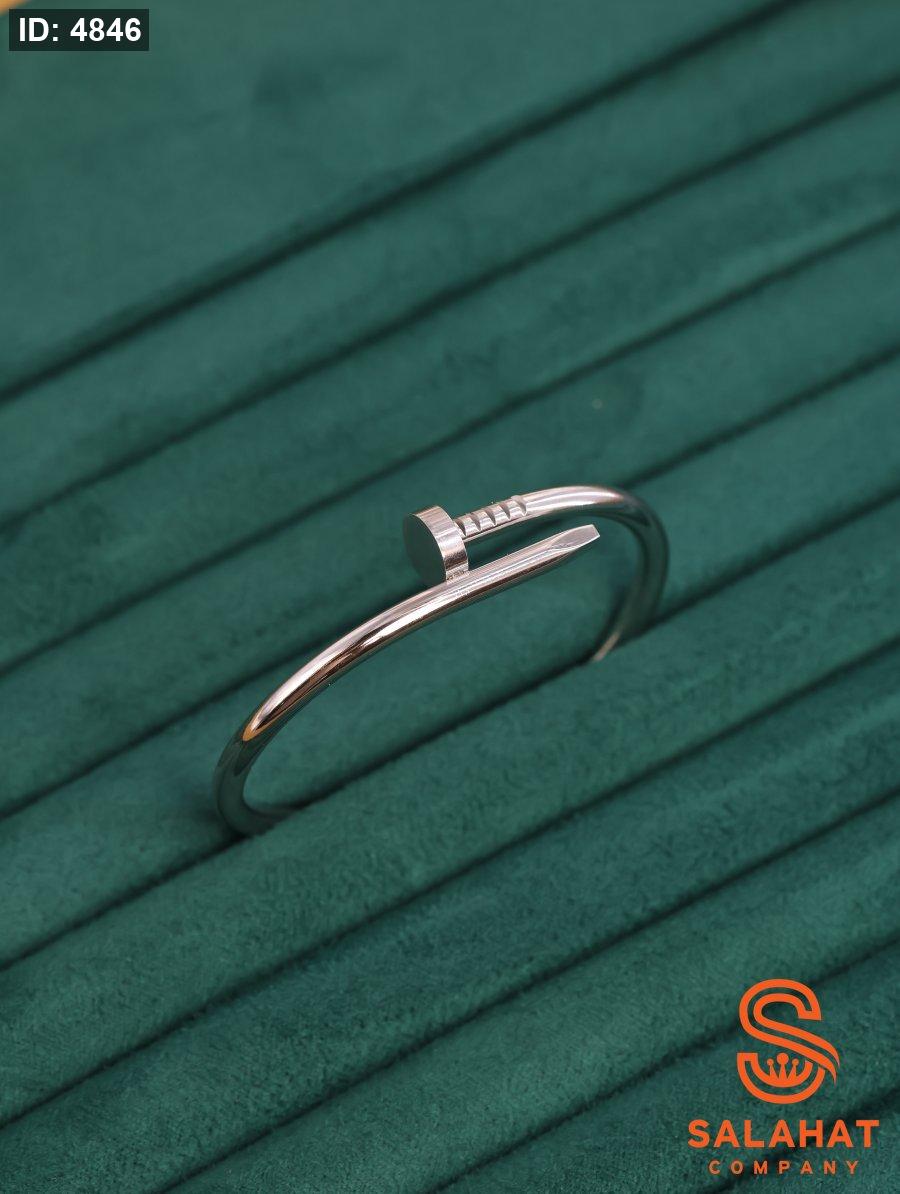 تميّزي بإطلالة جريئة وأنيقة مع هذه الإسوارة المصنوعة من الستانلس ستيل عالي الجودة، بتصميم مستوحى من شكل المسمار العصري الذي يجمع بين القوة والبساطة.