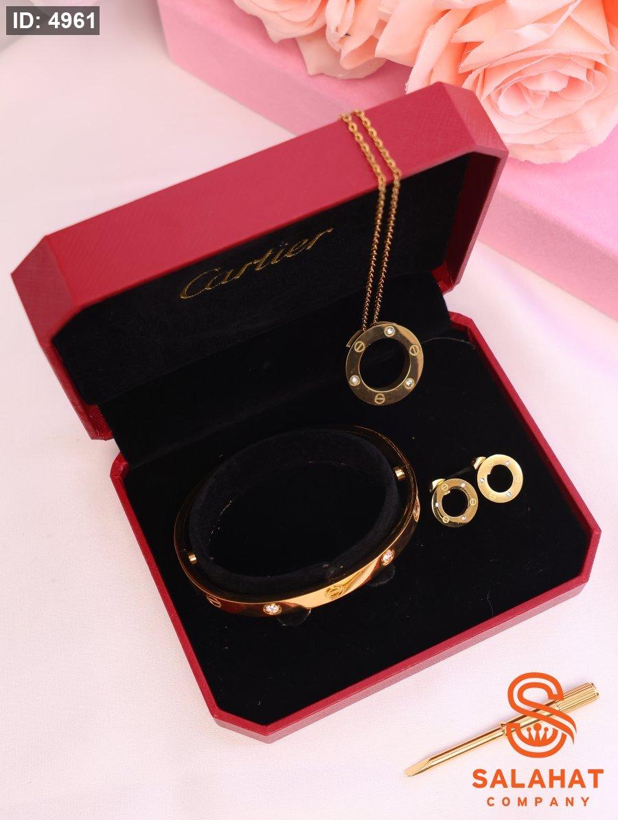 أضيفي لمسة من الفخامة والأناقة لإطلالتك مع طقم Cartier الكلاسيكي الذي يجمع بين التصميم العصري واللمسات الراقية.