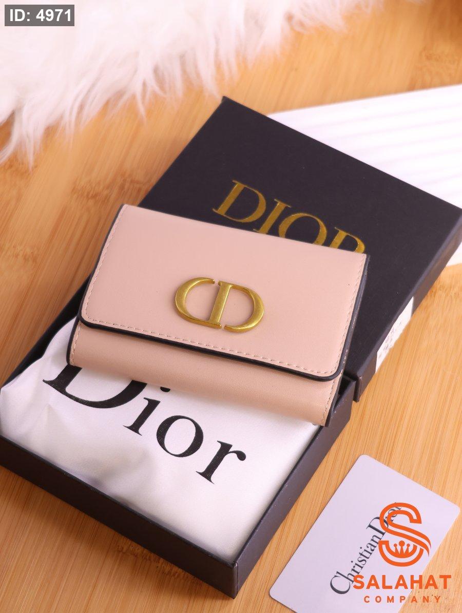 جزدان صغير فاخر من Dior باللون الوردي الباستيل، مصنوع من جلد عالي الجودة بتصميم Cannage quilting الأيقوني المستوحى من الكراسي النابوليونية التي اشتهرت بها الدار.