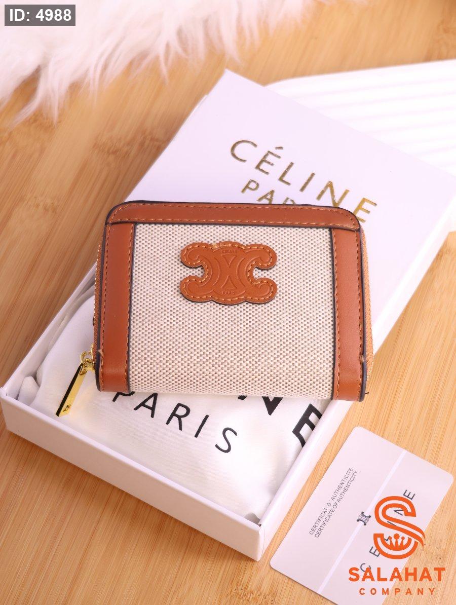 جزدان صغير من Celine Paris مصنوع من جلد طبيعي ناعم باللون الجملي الدافئ.