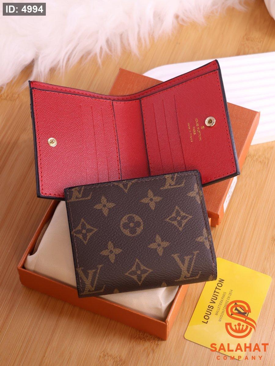 جزدان صغير من لويس فويتون مصنوع من جلد الـ Monogram Canvas البني المعروف، مع تفاصيل جلدية باللون الكاميل الفاتح