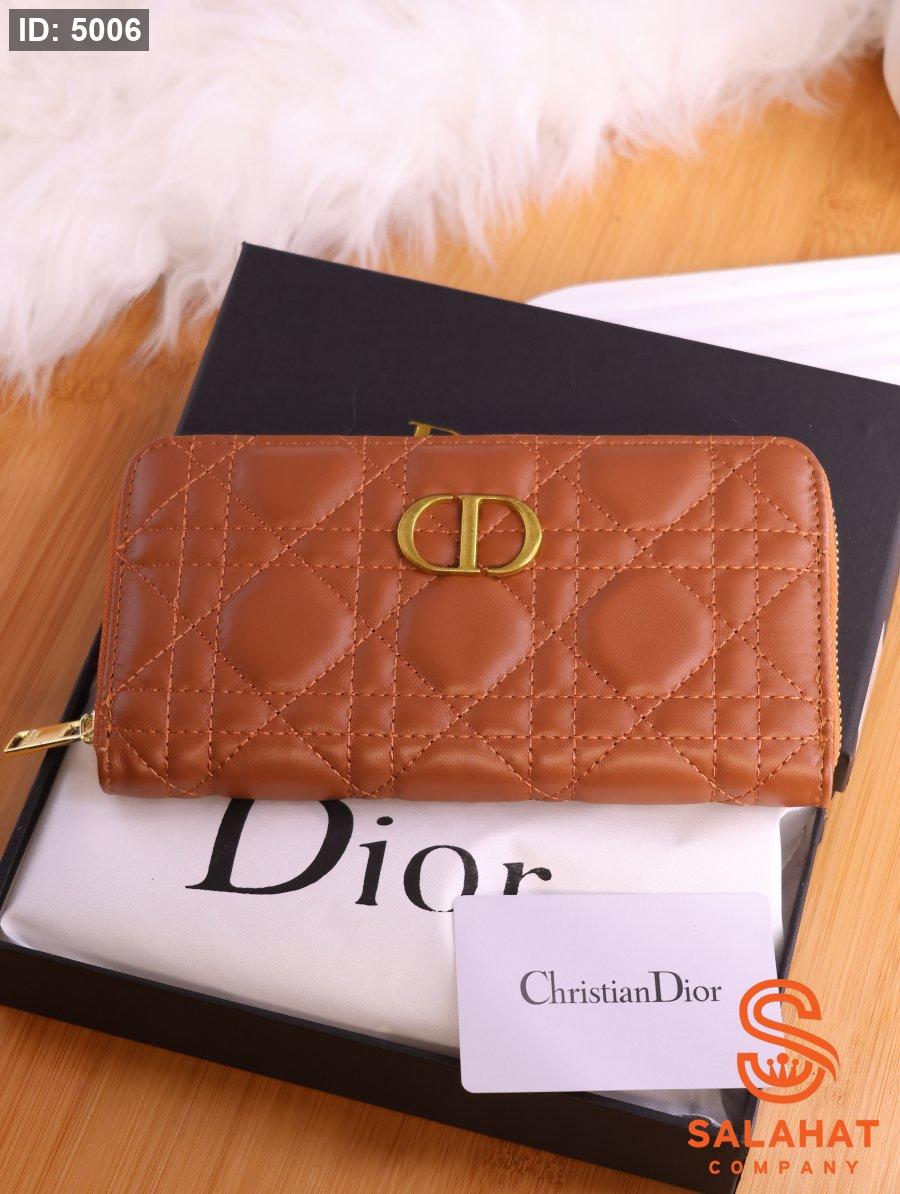 جزدان بحجم مناسب بتصميم Cannage quilting الأيقوني، باللون الوردي الباستيل مع شعار Dior الذهبي المتدلي.