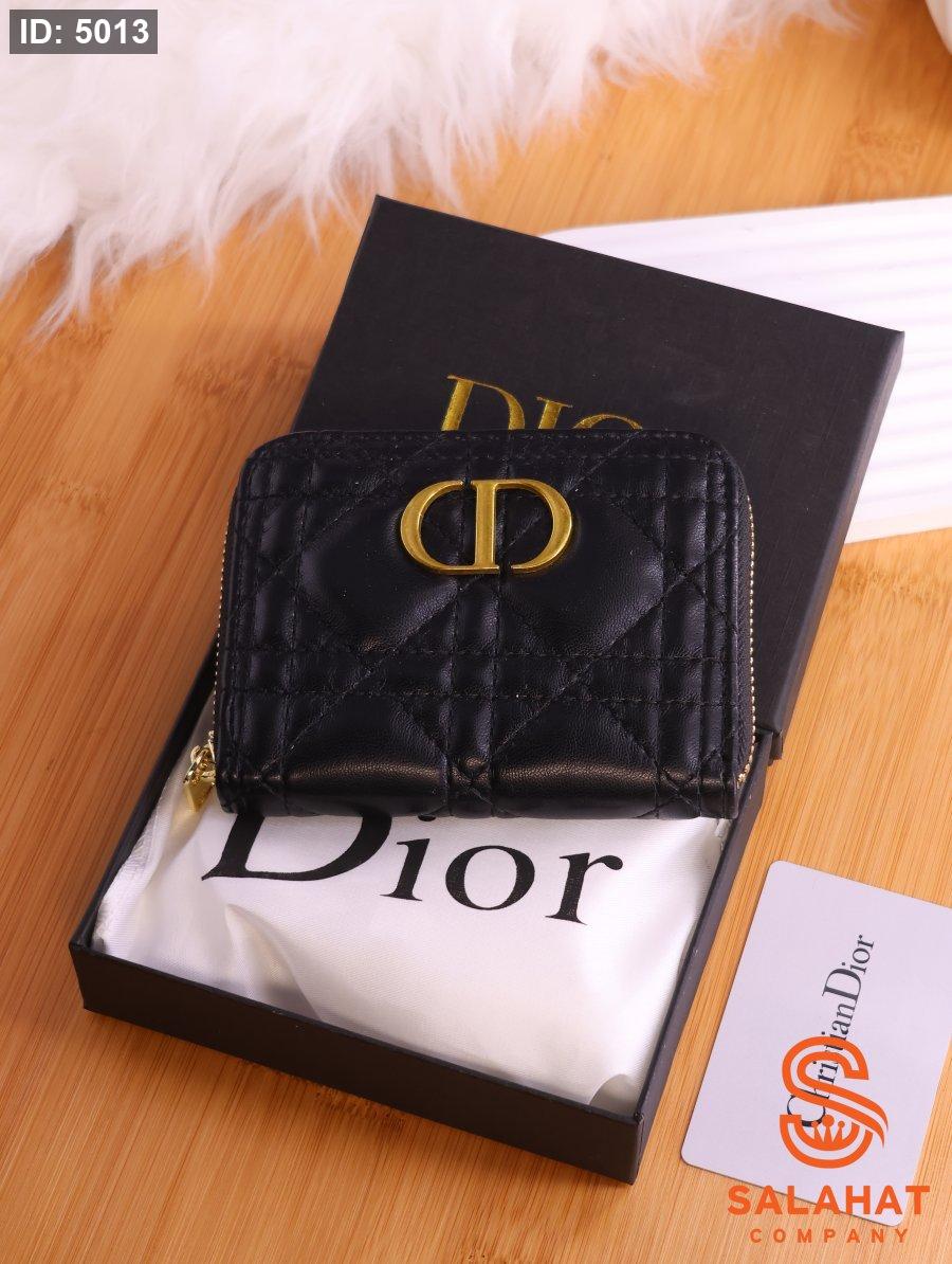 جزدان بحجم مناسب بتصميم Cannage quilting الأيقوني، باللون الوردي الباستيل مع شعار Dior الذهبي المتدلي.