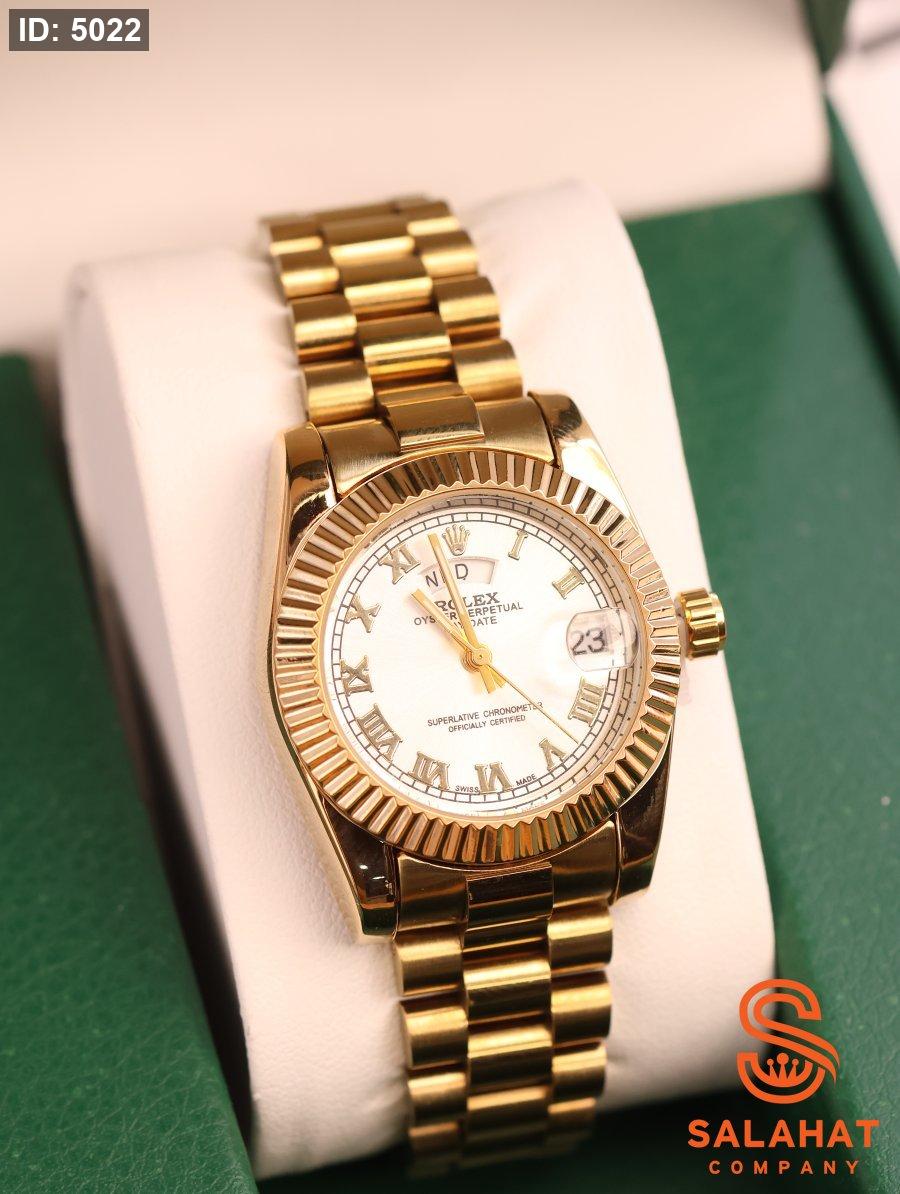 ساعة رولكس داي ديت ذهبية بميناء أبيض – أرقام رومانية