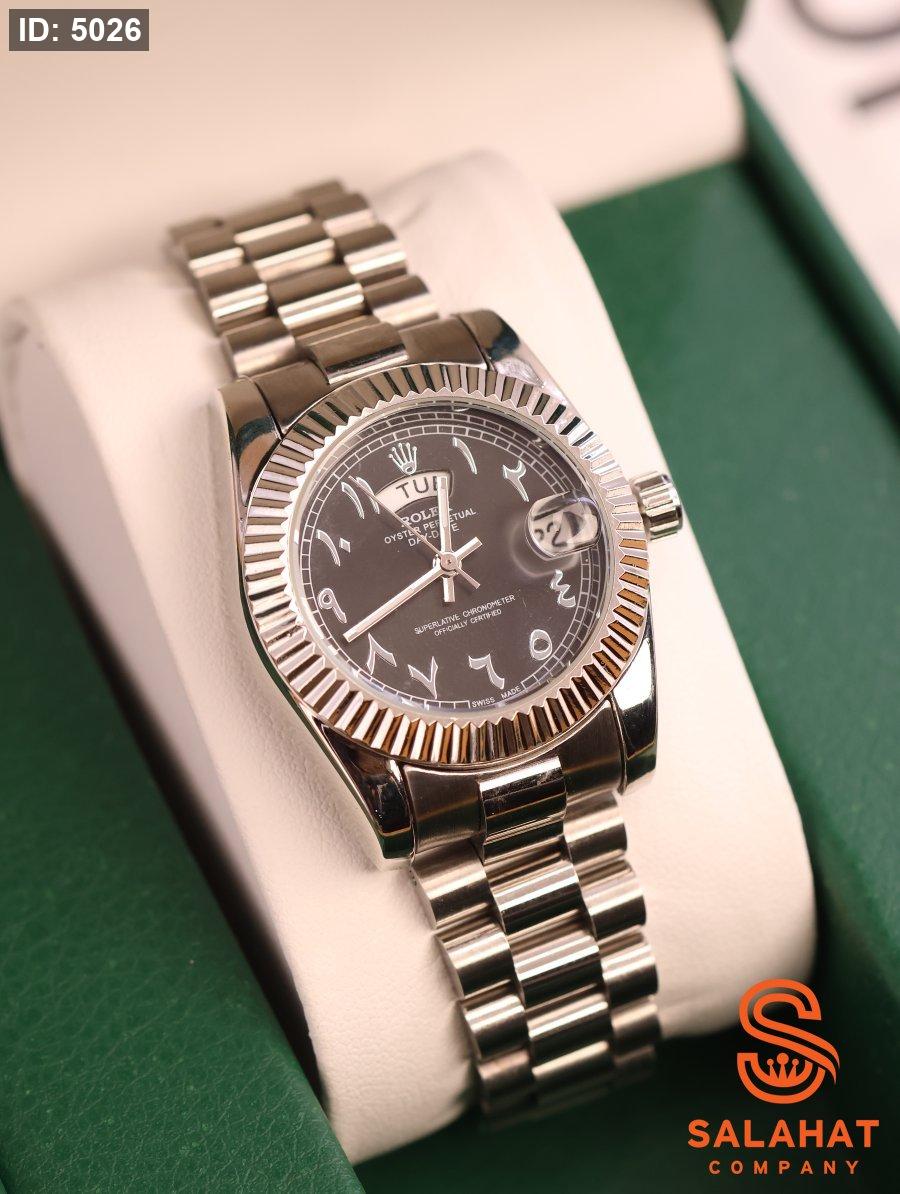 ساعة رولكس الفاخرة هذه تجمع بين الأناقة العصرية والفخامة الكلاسيكية.