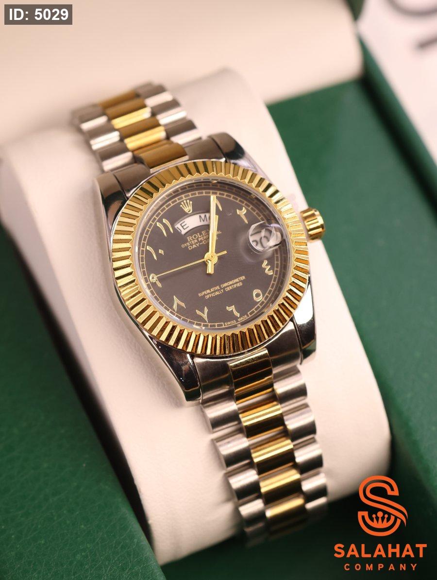 ساعة رولكس داي ديت ذهبية بميناء فضي كلاسيكي
