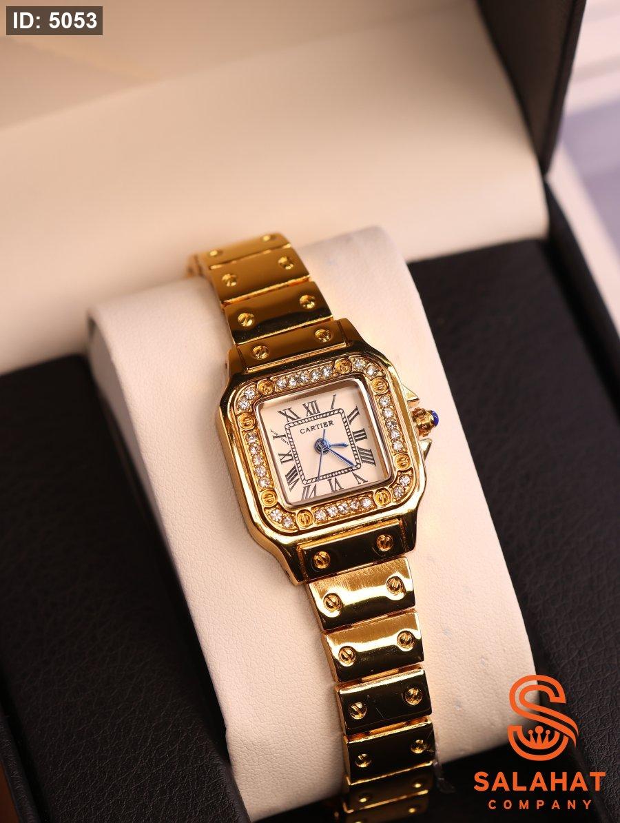 تصميم كلاسيكي فريد من كارتييه، بإطار مستطيل من الذهب المرصع بالأحجار اللامعة