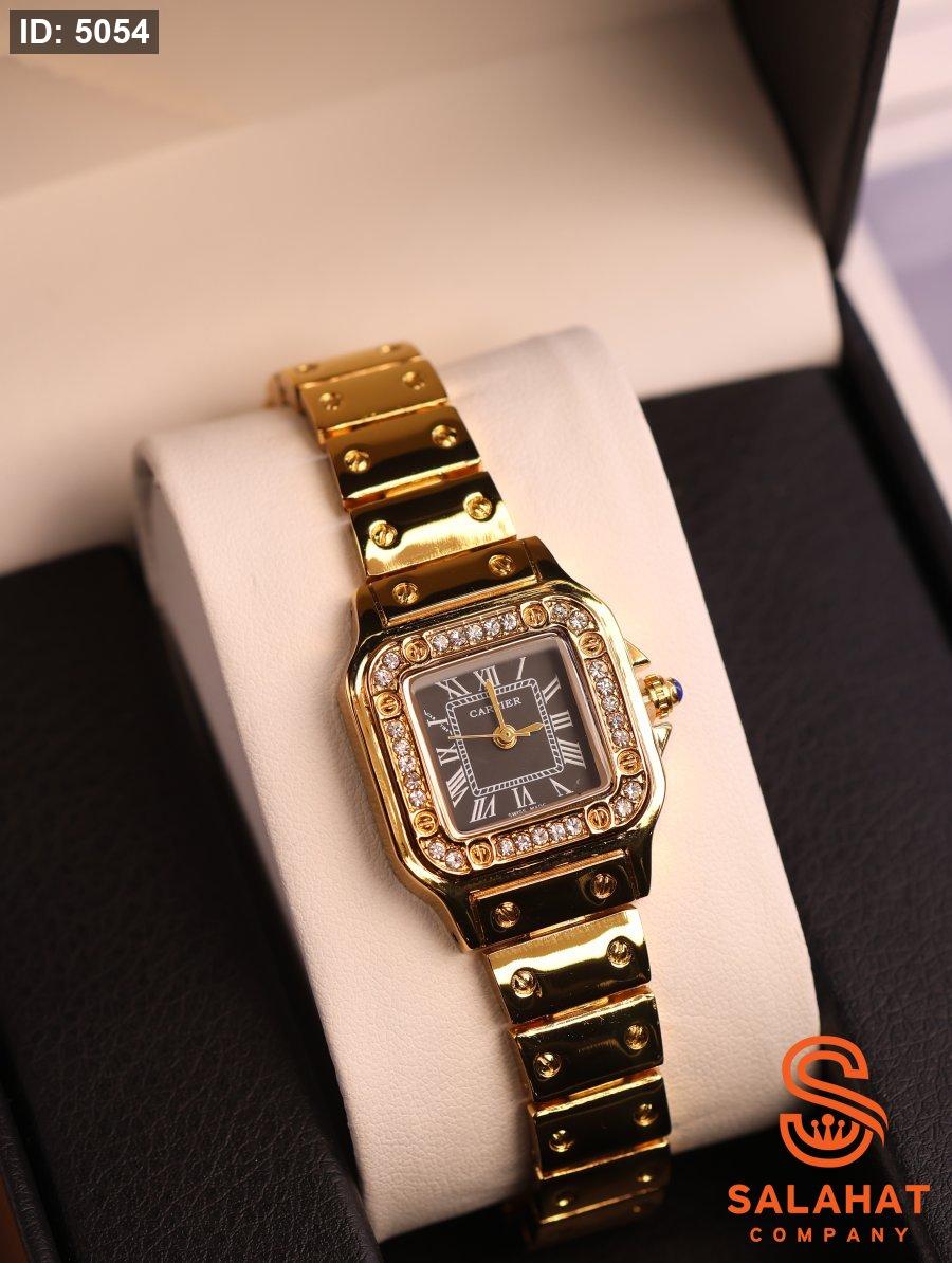 تصميم كلاسيكي فريد من كارتييه، بإطار مستطيل من الذهب المرصع بالأحجار اللامعة