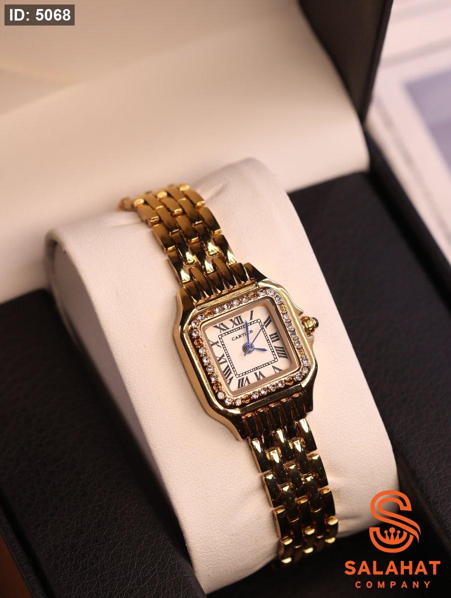 تصميم كلاسيكي فريد من كارتييه، بإطار مستطيل من الذهب المرصع بالأحجار اللامعة
