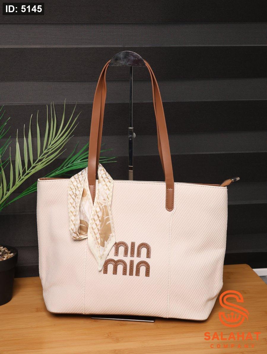 شنطة Tote واسعة من Min Min بلون وردي هادئ، مصممة بشكل عملي لتناسب الاستخدام اليومي والعمل.