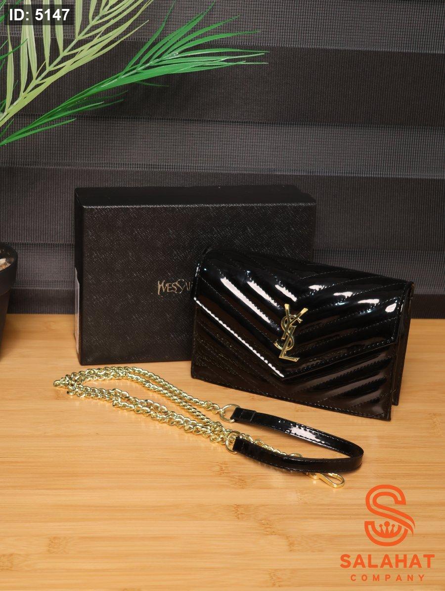 شنطة YSL باللون الأسود اللامع.