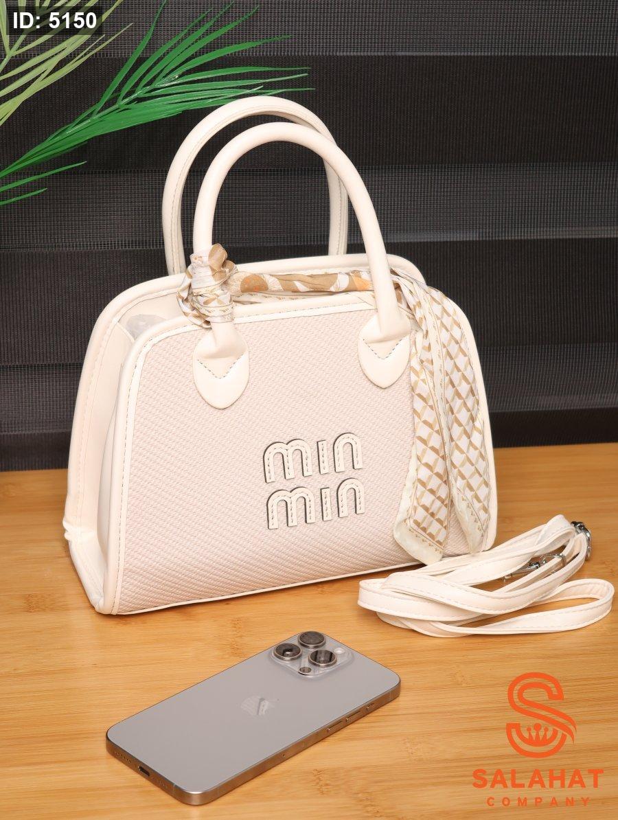 شنطة أنيقة من Min Min باللون الكلاسيكي، تتميز بمقبض يد قصير، ما يمنحها لمسة فريدة.