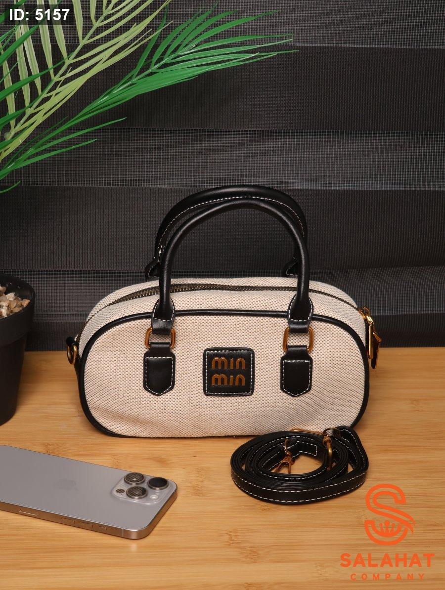 شنطة أنيقة من Min Min باللون الكلاسيكي، تتميز بمقبض يد قصير، ما يمنحها لمسة فريدة.