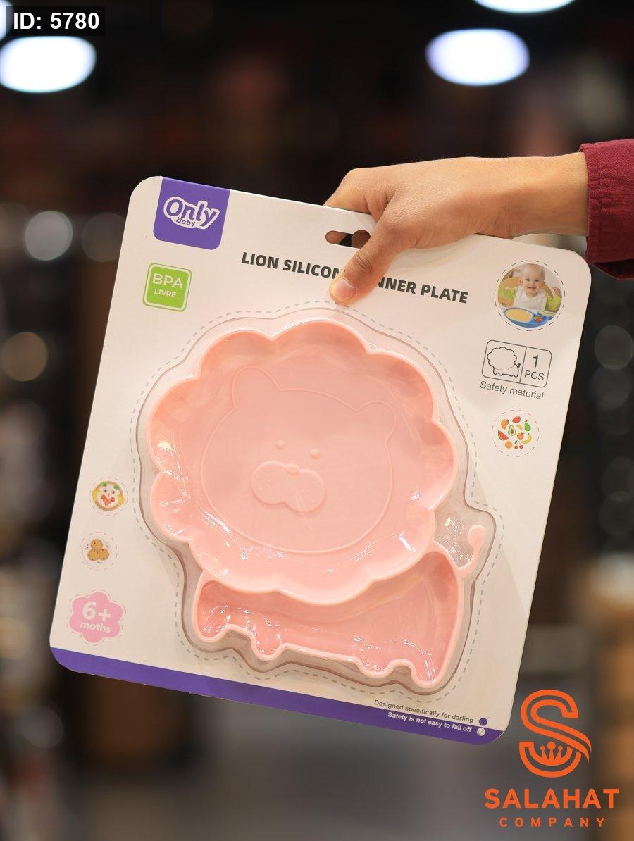 صحن طعام من (ONLY) مصنوع من السيليكون الآمن (BPA Free)، بتصميم لطيف على شكل أسد يجذب الأطفال ويجعل وقت الطعام ممتعًا.
