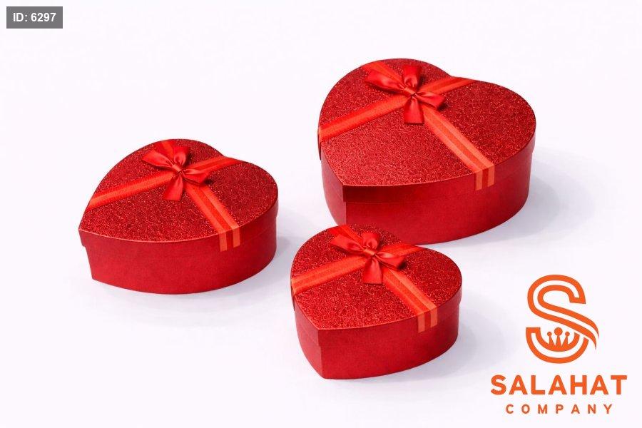 صندوق هدايا جلد 3 قطع شكل قلب.
